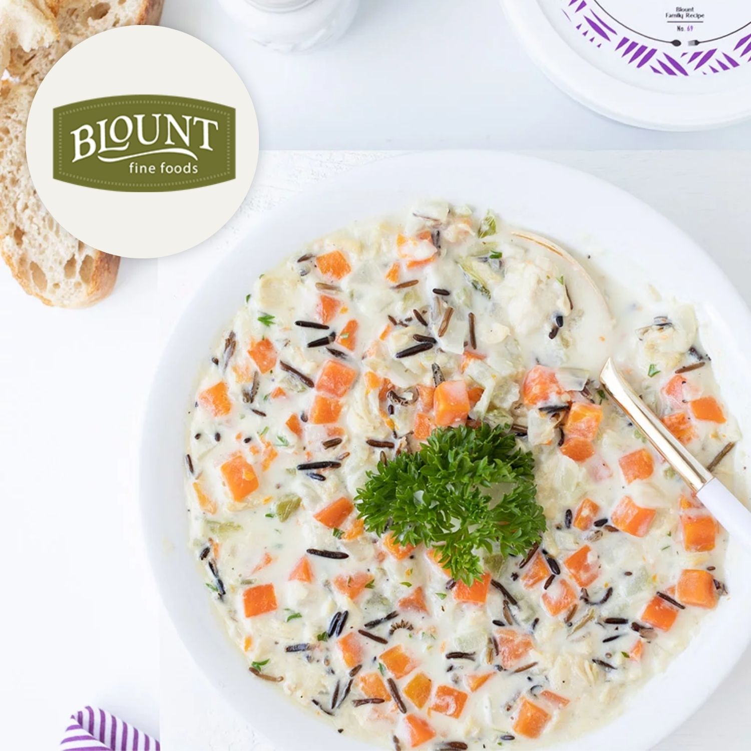 A hearty combination of wild rice and savory chicken is simmered in a rich, creamy broth with vegetables and herbs.